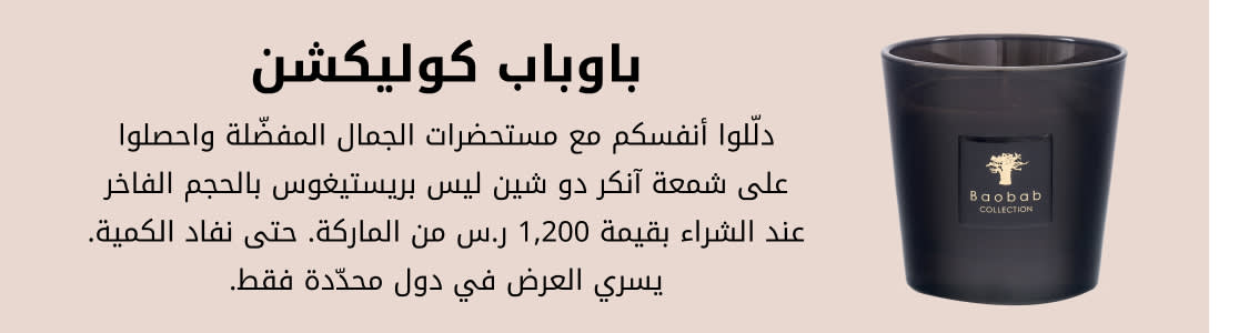 تأسست ماركة باوباب كوليكشن في بلجيكا عام 2002، لتحوّل العطور المنزلية إلى قطعة فنية فريدة. تصاميمها مستوحاة من المناظر الطبيعية الشاسعة في أفريقيا، حيث تدمج شموعها الكبيرة متعددة الفتائل والتحف الزخرفية بين الفرادة العطرية والتصاميم الفنية الخلابة. وبفضل النفحات الراقية التي تثير المشاعر والتصاميم المذهلة التي ترتقي بزوايا منزلك، تحتل باوباب كوليكشن مكانة رائدة في مجال العطور المنزلية الفاخرة، حيث تبتكر إبداعات آسرة بتفاصيل راقية ومميزة.